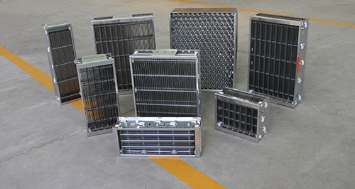 集塵板: 集塵板帶正負電,將已帶電之污染粒子吸附起來氧的產生。在此階段電壓減至4000伏特,使集塵板能密集排列,增大集塵面。